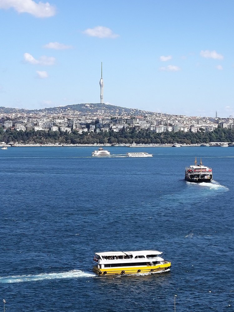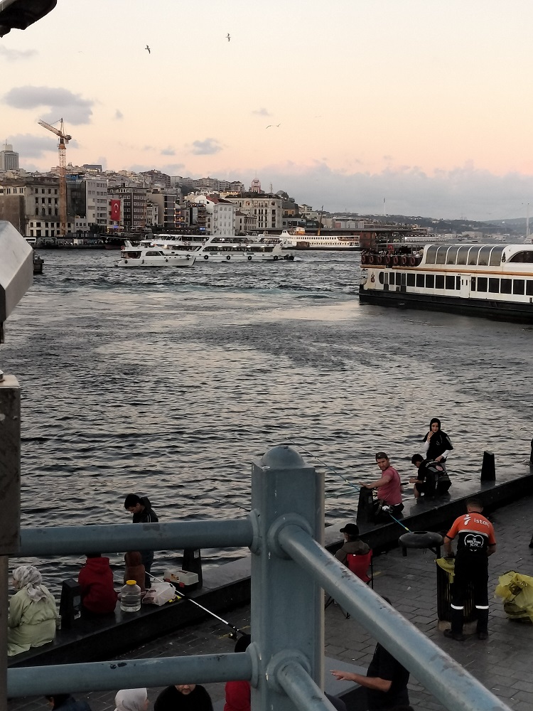 アジアとヨーロッパが海峡を挟んで接している。というのがトルコに対しての私のただ一つの認識であり、その海峡を望むのはやっぱりワクワクしてくる。ボスポラス海峡と金角湾。久しぶりに見る海。ぱーっと目の前に海が見える景色は今まで回ってきたフランスやイタリアにはなかったのでとても新鮮なものに見える。金角湾にかかる橋の上では釣り人がたくさん。こんなところでとちょっと驚く。 行き交う船で海の上は活気に満ちている。